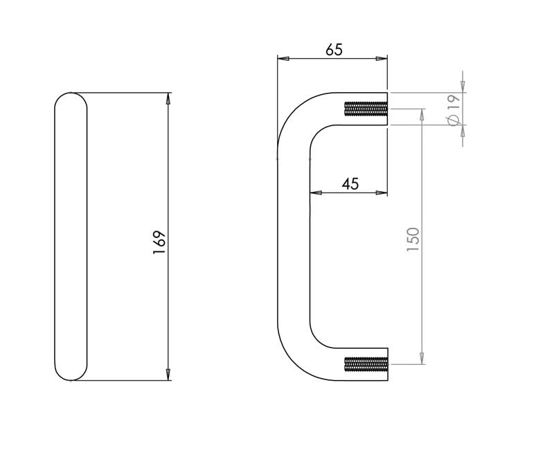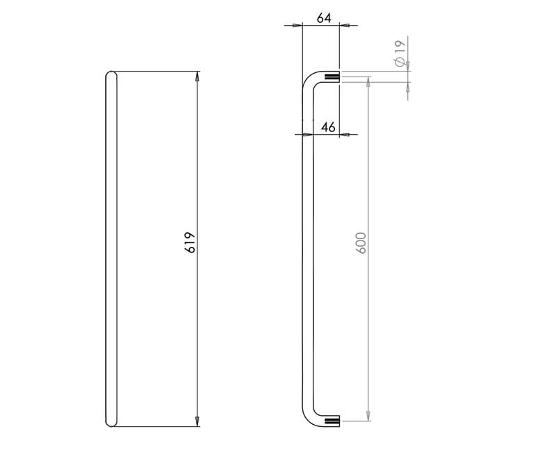 Stainless Steel 19mm D Shape Pull Handles Grade 304 B/T Fixing