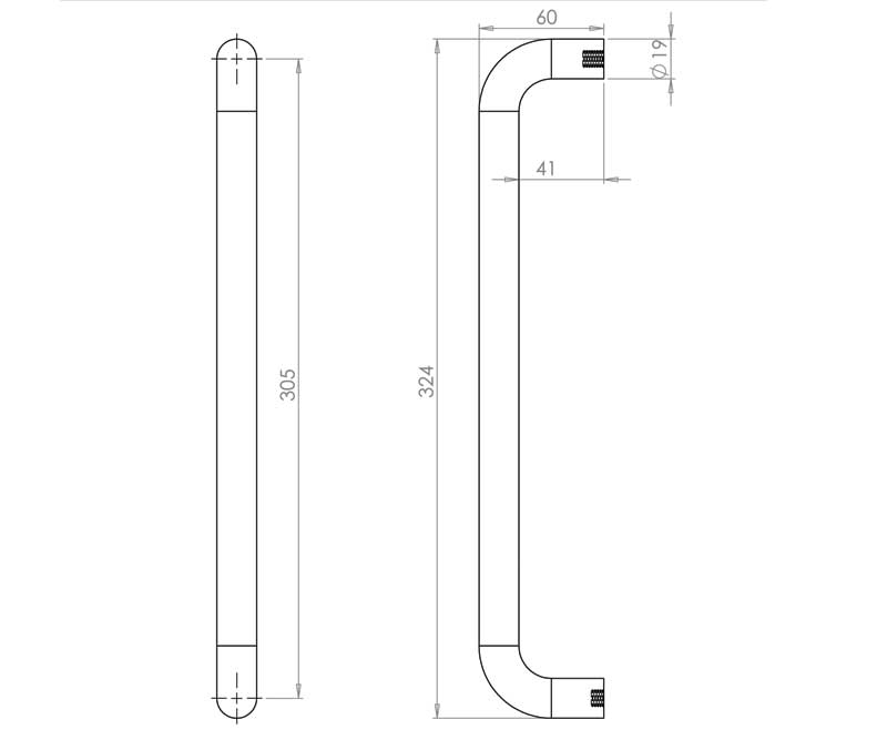 Aluminium 19mm D Shape Pull Handle Bolt Through Fixing SAA Finish