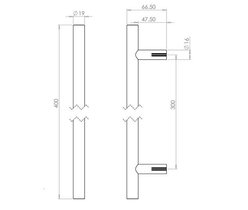 Stainless Steel 19mm Guardsman Pull Handles B/T Fixing