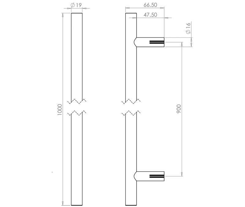 Stainless Steel 19mm Guardsman Pull Handles B/T Fixing