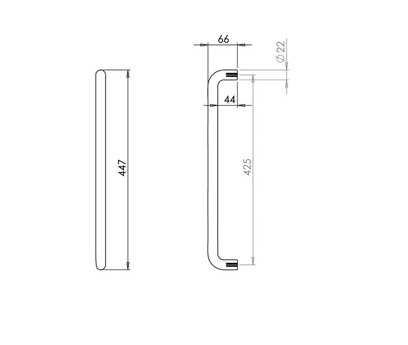 Stainless Steel 22mm D Shape Pull handles Grade 304