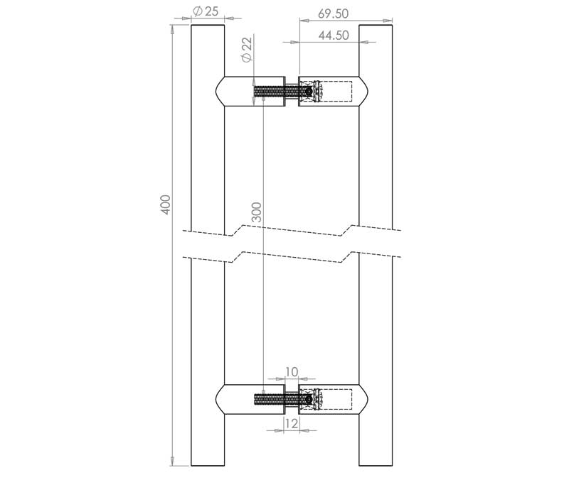 Stainless Steel 25mm Guardsman Pull Handles B2B Fixing
