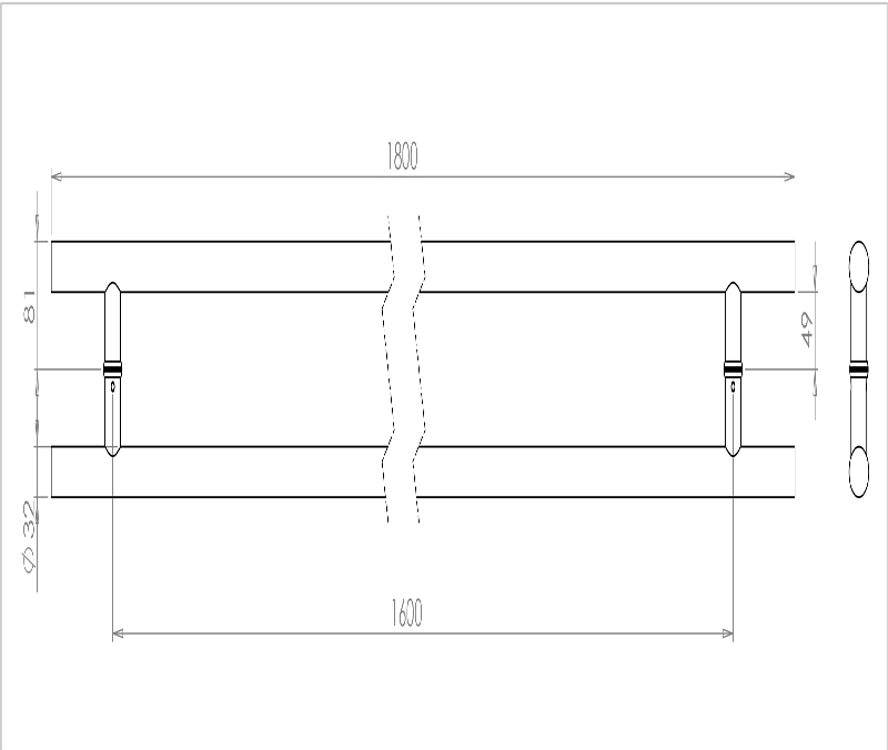 Stainless Steel 32mm Guardsman Pull Handles B2B Fixing