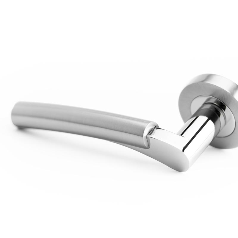 The Arkus Lever on Rose Door Handle features a unique two-part design, making it an ideal choice for any door. Available in multiple dual finish options to complement various styles, this handle is fire door rated for 30 minutes, ensuring safety and reliability. Crafted from durable zinc, it offers both strength and longevity. Sold in pairs.