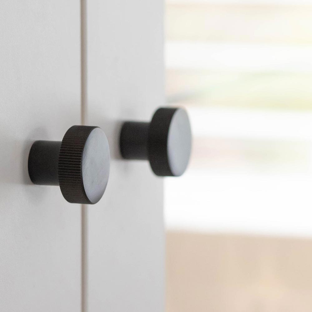 The Hoxton Thaxted Line Knurled Cupboard Knob features a unique line knurling design and comes in 30mm and 40mm sizes, with 6 finish options.