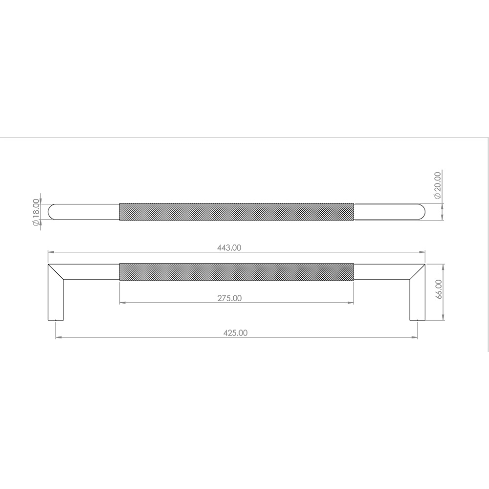 Upgrade your doors with the Nero Mitred Knurled Pull Handle 425x20mm with Bolt-Through Fixing in Black. Designed for high-end modern interiors, this handle provides an ergonomic grip with a sleek knurled finish.
