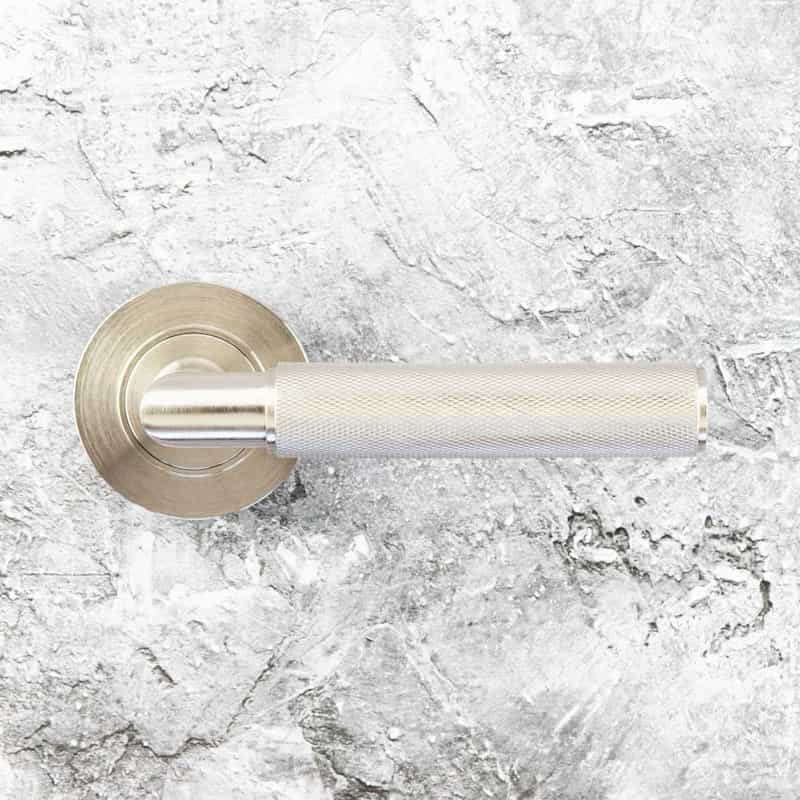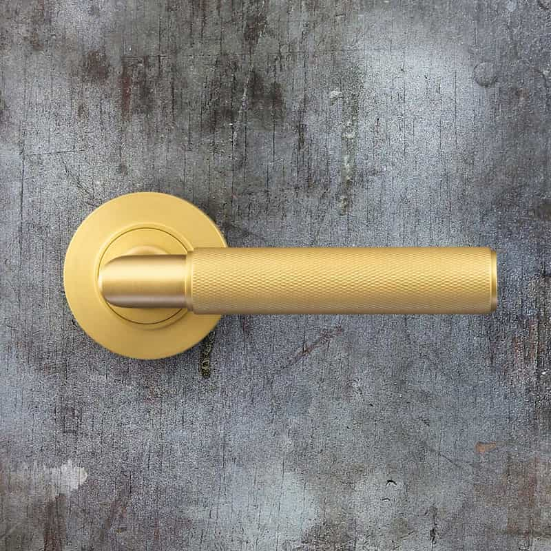 The Piccadilly Lever on Rose from the Burlington Range is a luxury, solid brass door handle featuring diamond knurled detailing. Designed for premium residential and commercial interiors, this weighty lever is sold in pairs for a perfect balance of style and durability.