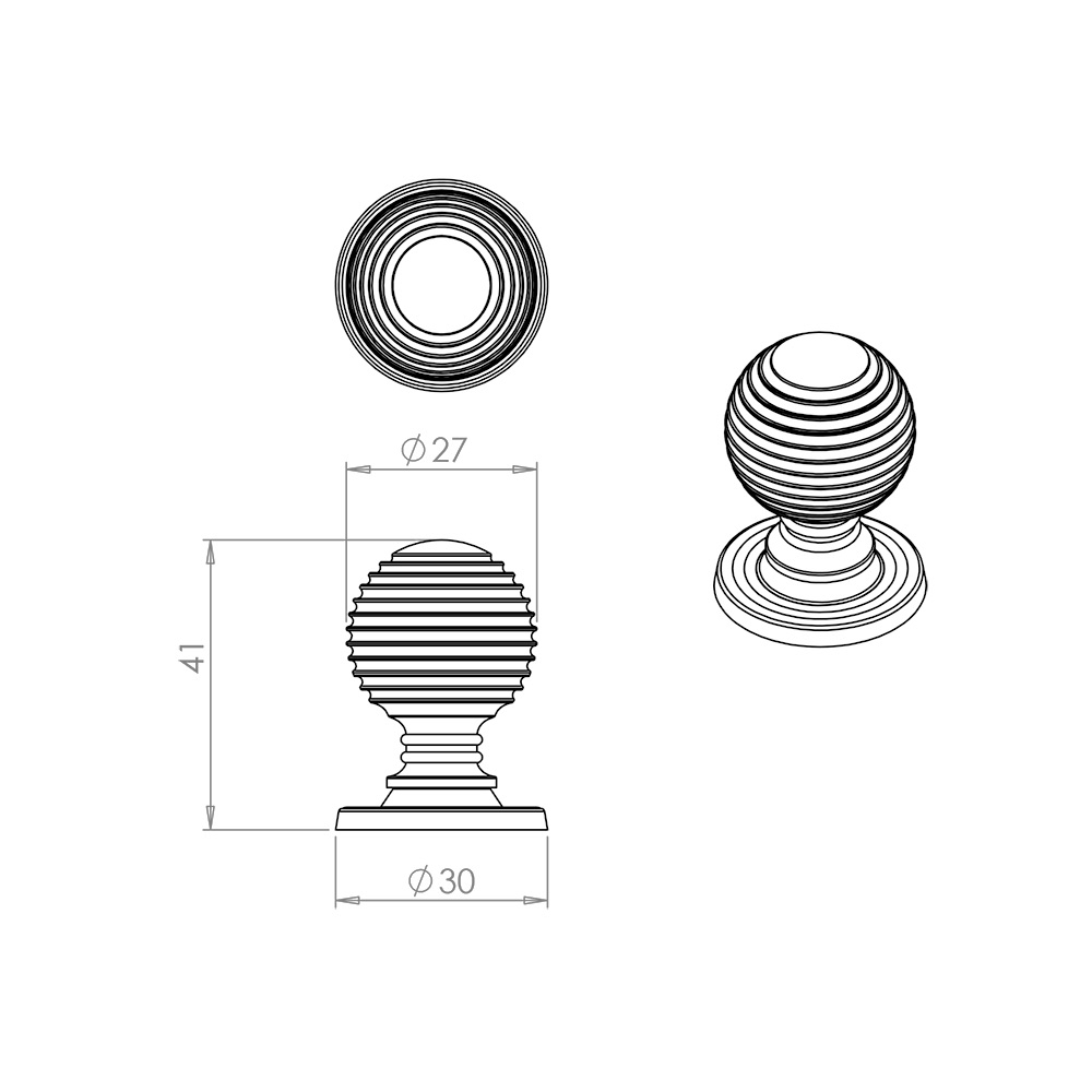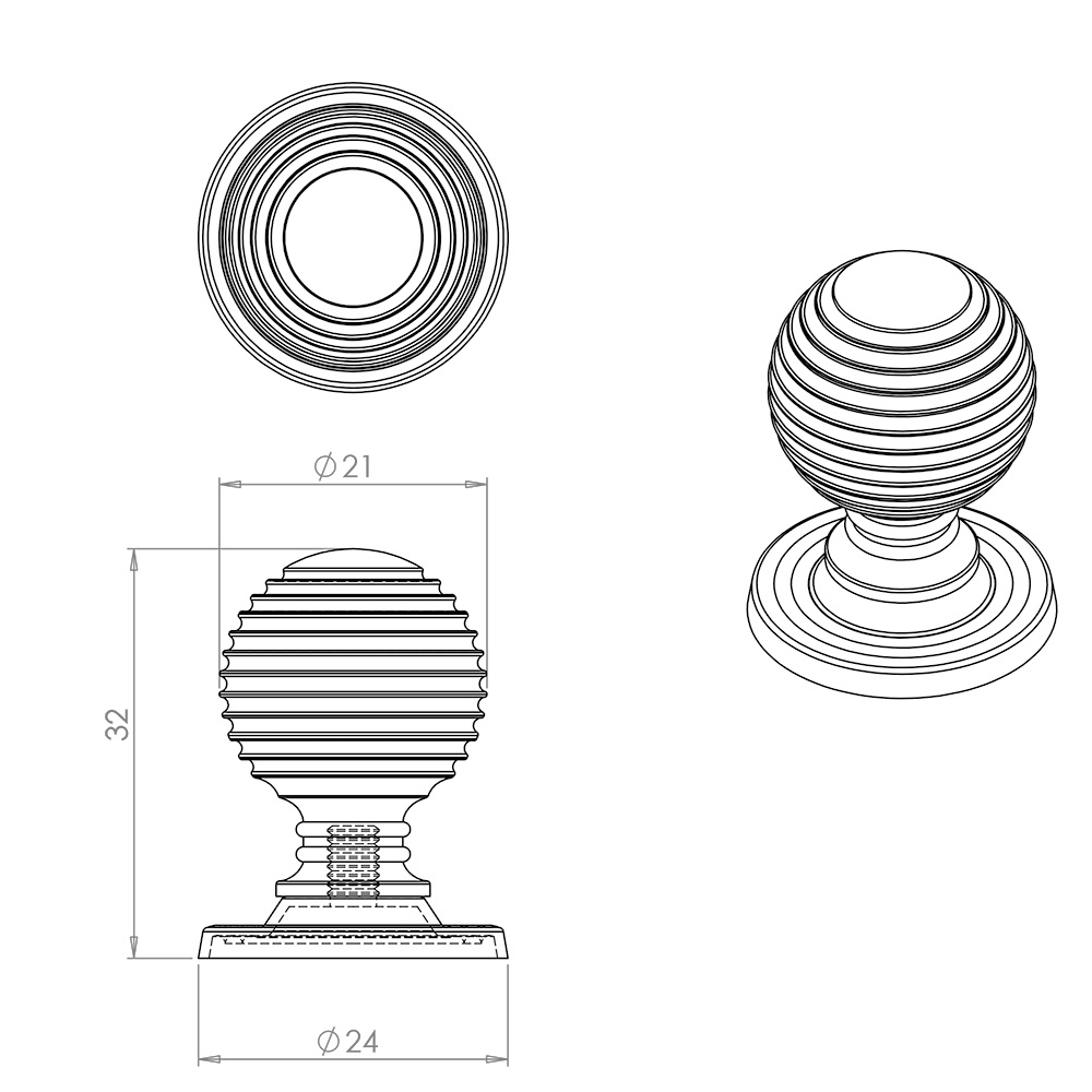 Our reeded beehive styled cupboard door knobs feature detailed rings from the tip of the knob to the base of the rose to create a very unique looking internal doorknob.