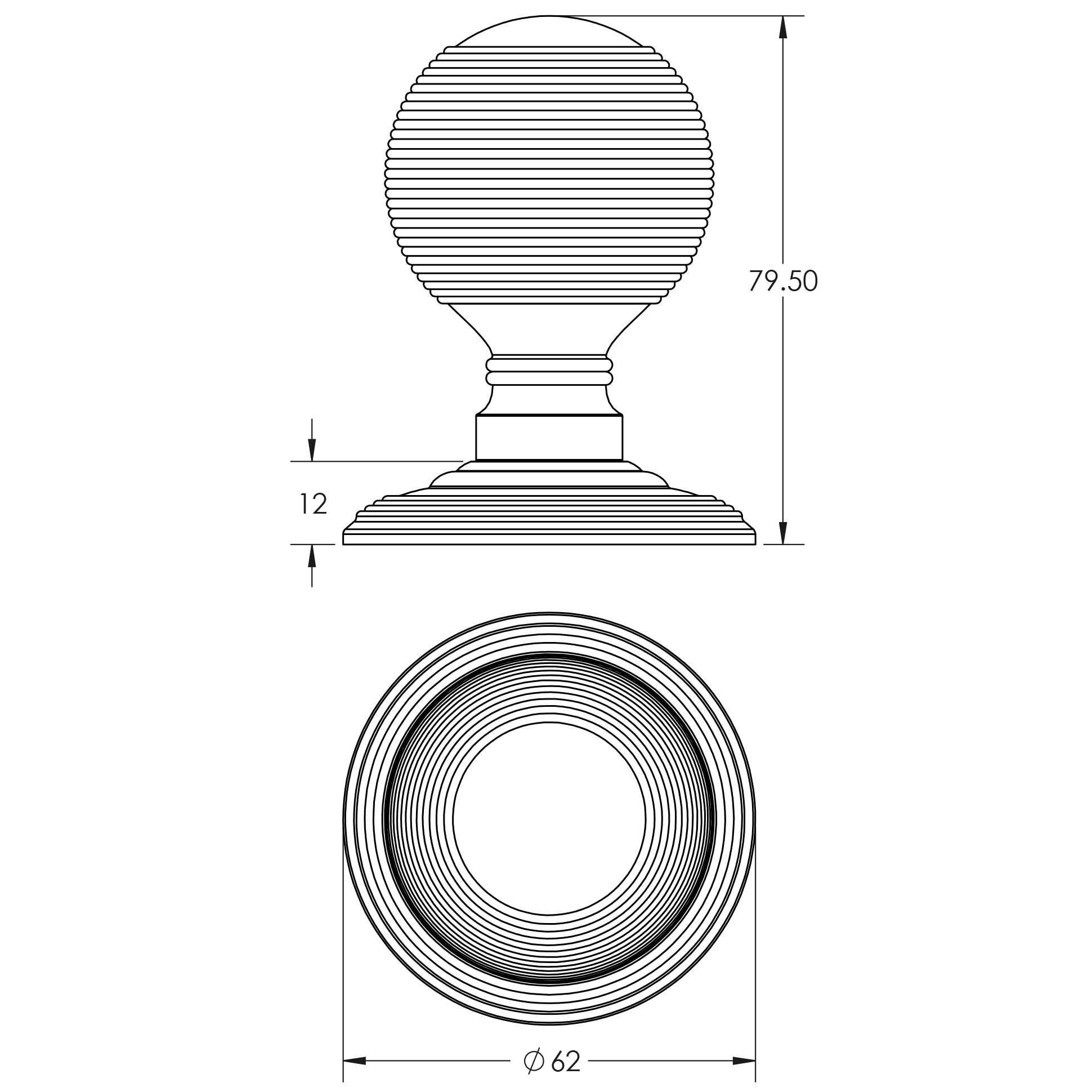 A reeded mortice knob is a type of door handle that features a particular design pattern and functions with a mortice lock or latch mechanism. The terms "reeded" and "beehive" describe the decorative pattern on the knob, which consists of a series of parallel grooves (reeding) and/or stacked rings that resemble a beehive structure. This pattern is often found on period or vintage-style door hardware and adds a touch of elegance to the overall aesthetic, sold in pairs