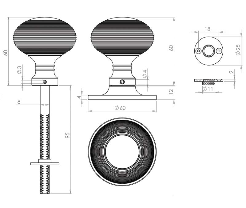Enhance the beauty of your doors with our exquisite Reeded Rim Door Knobs, crafted from high-quality solid brass. These door knobs feature a reeded design that adds a touch of elegance and sophistication to any door. Perfect if you’re looking for a doorknob to be used on doors with rim locks or latches that has a unique look to traditional door handles. A lovely beehive pattern is present throughout the majority of the knob and the rose!