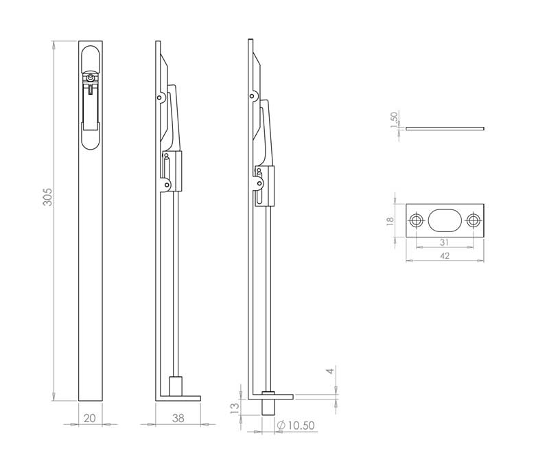Flush Bolts provide a sleek and unobtrusive solution for securing the inactive leaf of double doors, perfect for maintaining a clean aesthetic in modern interiors.