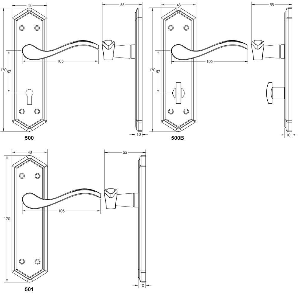 This handle is available in 3 different styles latch, lock and bathroom along with three backplate variations!